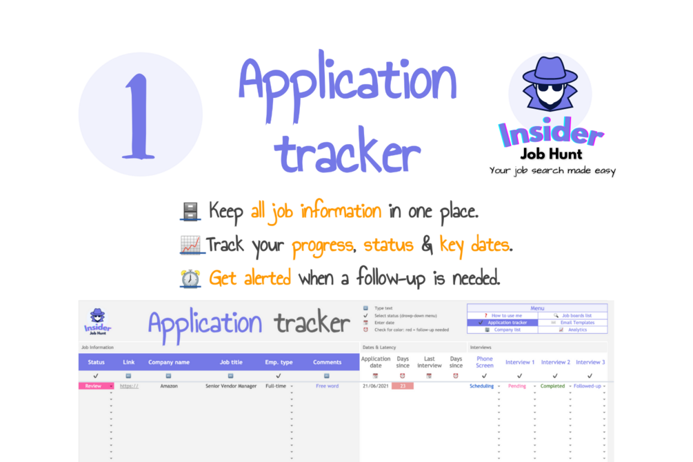 Your job search fully organised in beautiful & tidy spreadsheet tabs with dozens of easy to use functionalities (with video tutorials).