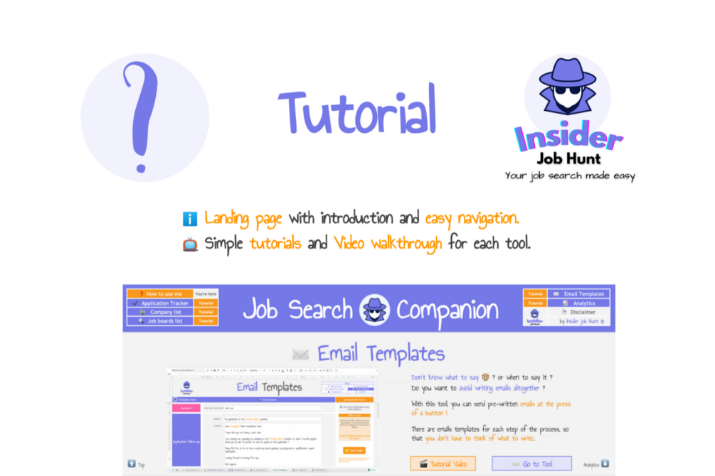 Your job search fully organised in beautiful & tidy spreadsheet tabs with dozens of easy to use functionalities (with video tutorials).